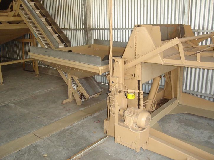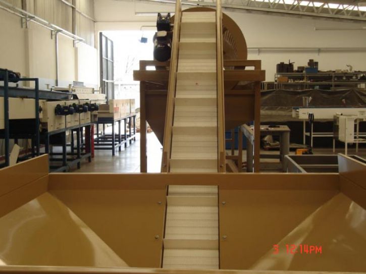 - Elevadora de banda plástica abastece la calibradora.