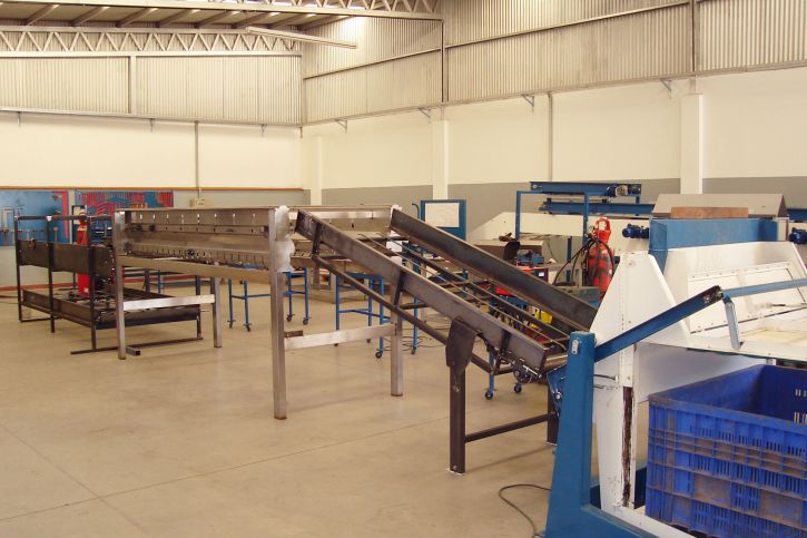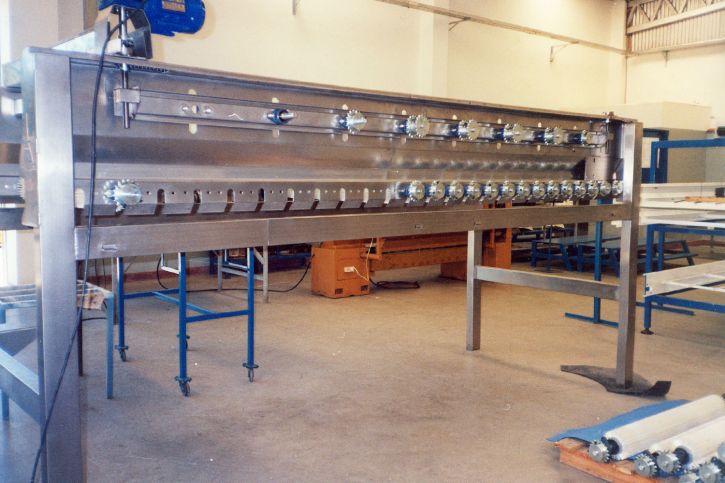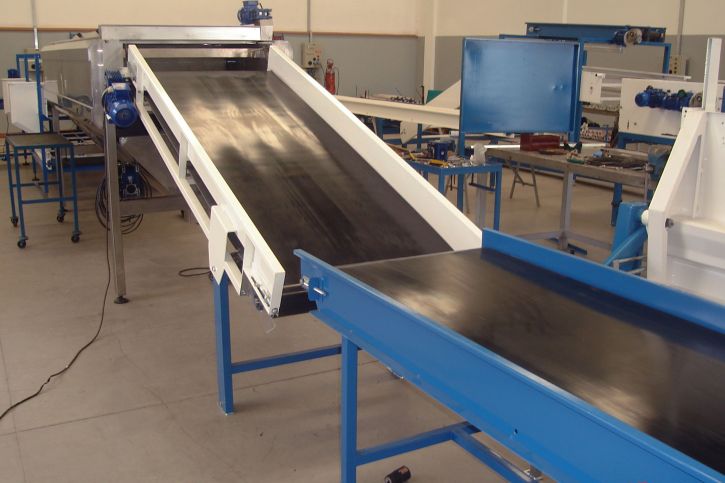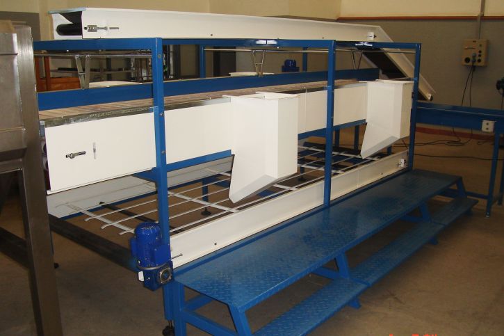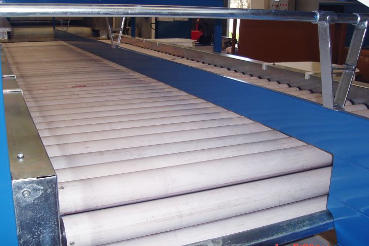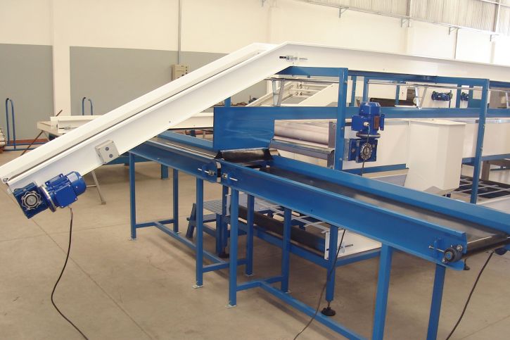 - Mesa de inspección a rodillos giratorios con Cinta de Descarte.