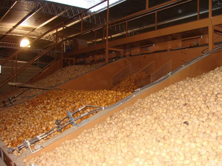 - Una cinta ubicada en la parte superior de los secadores, distribuye las nueces.