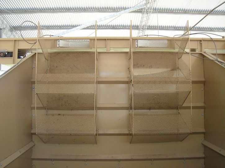- Un sistema de cascadas dosifica el ingreso al bins para evitar el golpe del producto.