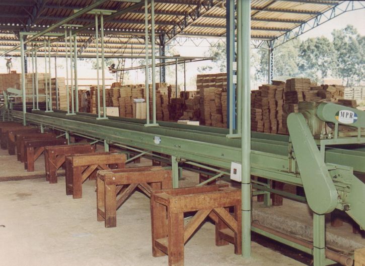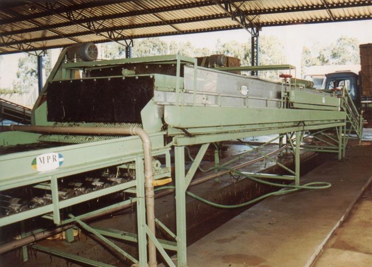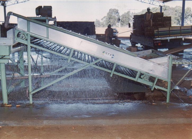 - Tolva con Elevador a rodillos abastece la lavadora cepilladora.